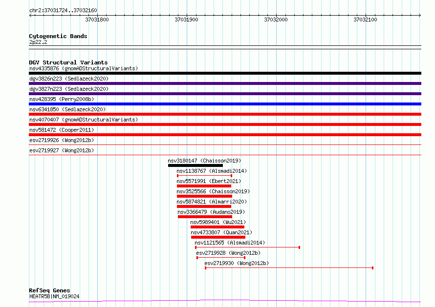 Variant DetailsVariant: essv6917742| Internal ID | 10028245 | | Landmark | | | Location Information | | | Cytoband | 2p22.2 | | Allele length | | Assembly | Allele length | | hg38 | 437 | | hg19 | 437 |
