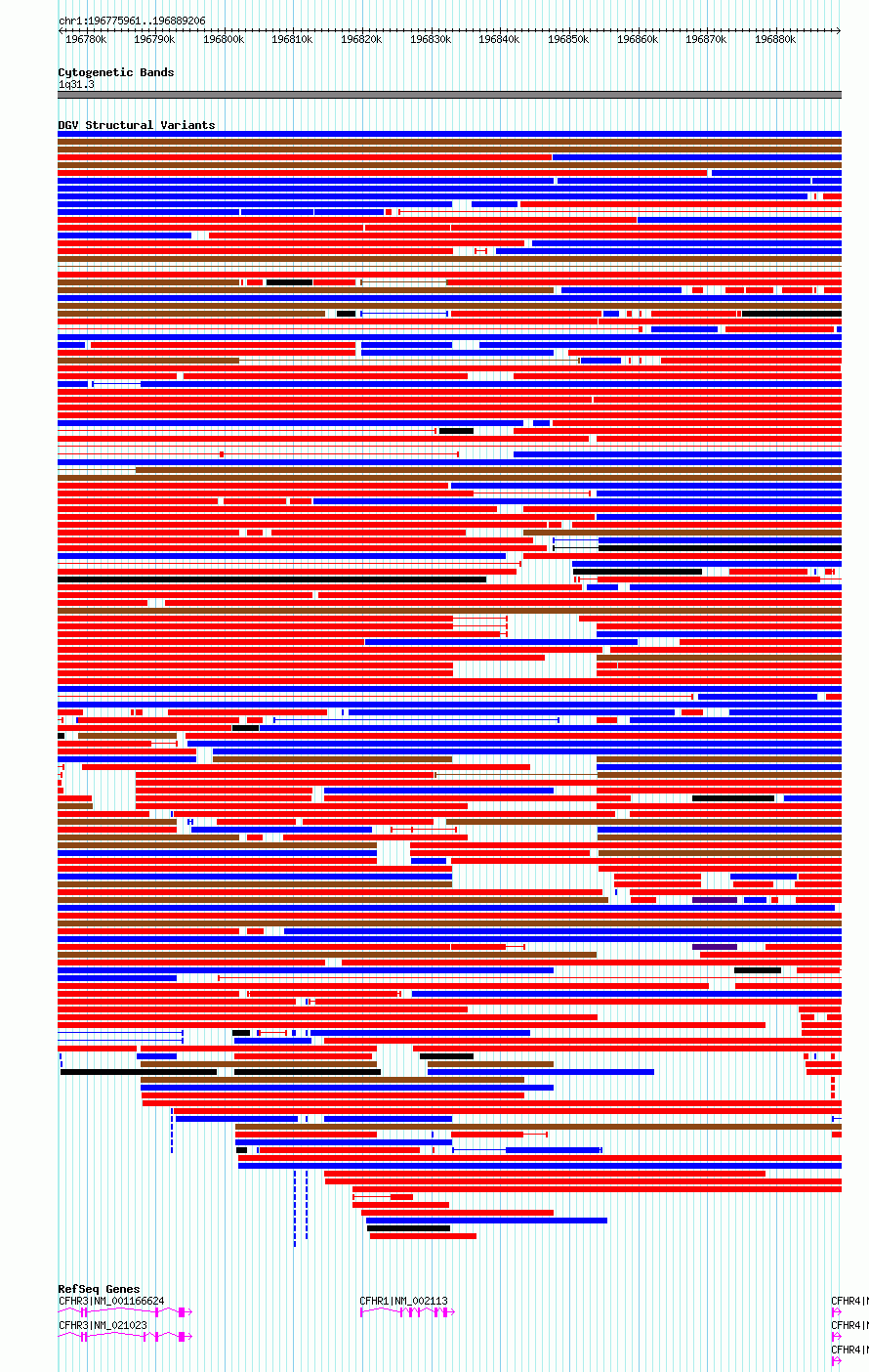 | | Variant Type | CNV deletion | | Copy Number | | | Allele State | | | Allele Origin | | | Probe Count | | | Validation Flag | | | Merged Status | S | | Merged Variants | esv2721029 | | Supporting Variants | | | Samples | SSM003 | | Known Genes | CFHR1, CFHR3, CFHR4 | | Method | Sequencing | | Analysis | Breakdancer:4 times standard deviation,VariationHunter:4 times standard deviation and at least 3 supportting reads | | Platform | Illumina HiSeq 2000 | | Comments | | | Reference | Wong_et_al_2012b | | Pubmed ID | 23290073 | | Accession Number(s) | essv6917941