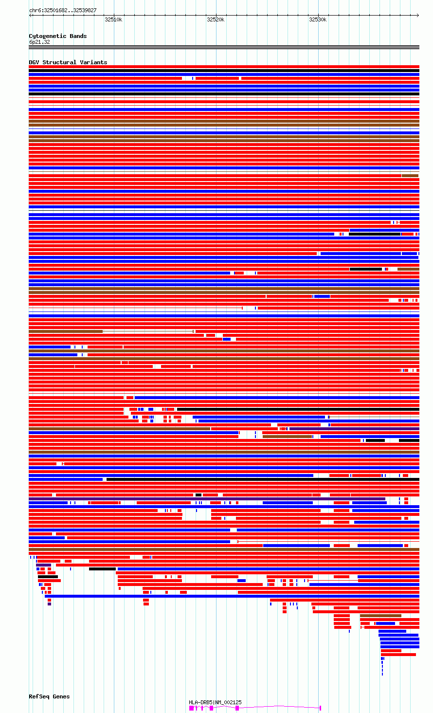 Variant DetailsVariant: essv6918755| Internal ID | 10029157 | | Landmark | | | Location Information | | | Cytoband | 6p21.32 | | Allele length | | Assembly | Allele length | | hg38 | 38146 | | hg19 | 38146 |