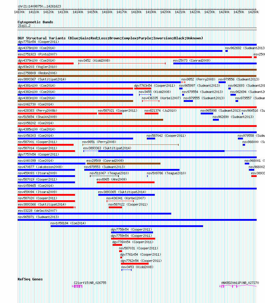 | Known Genes | ANKRD20A11P, C21orf15 |