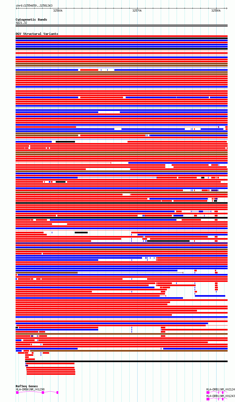 Variant DetailsVariant: essv6926793| Internal ID | 10036198 | | Landmark | | | Location Information | | | Cytoband | 6p21.32 | | Allele length | | Assembly | Allele length | | hg38 | 26705 | | hg19 | 26705 |