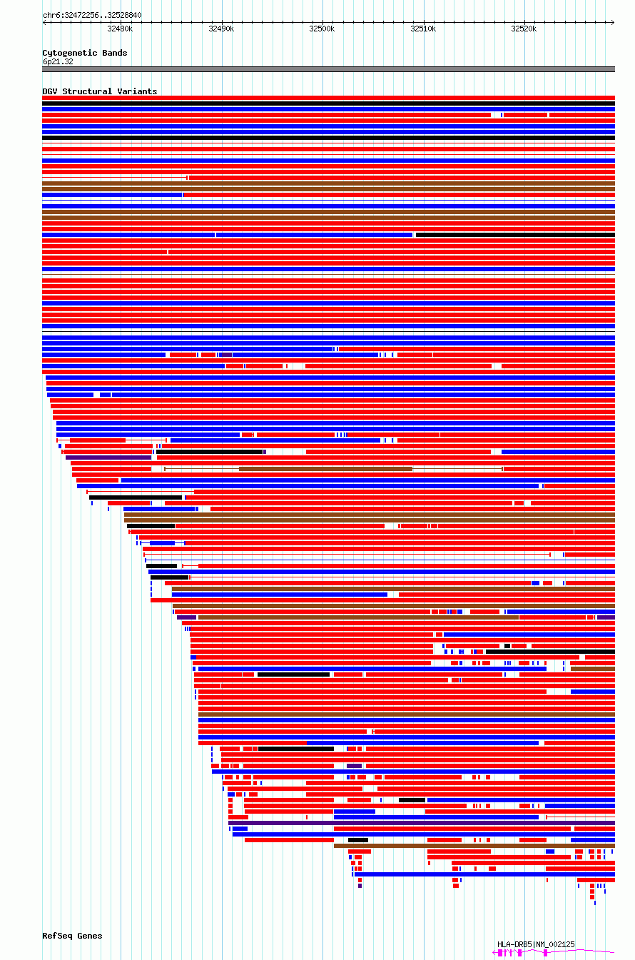 Variant DetailsVariant: essv6927884| Internal ID | 9987716 | | Landmark | | | Location Information | | | Cytoband | 6p21.32 | | Allele length | | Assembly | Allele length | | hg38 | 56585 | | hg19 | 56585 |
