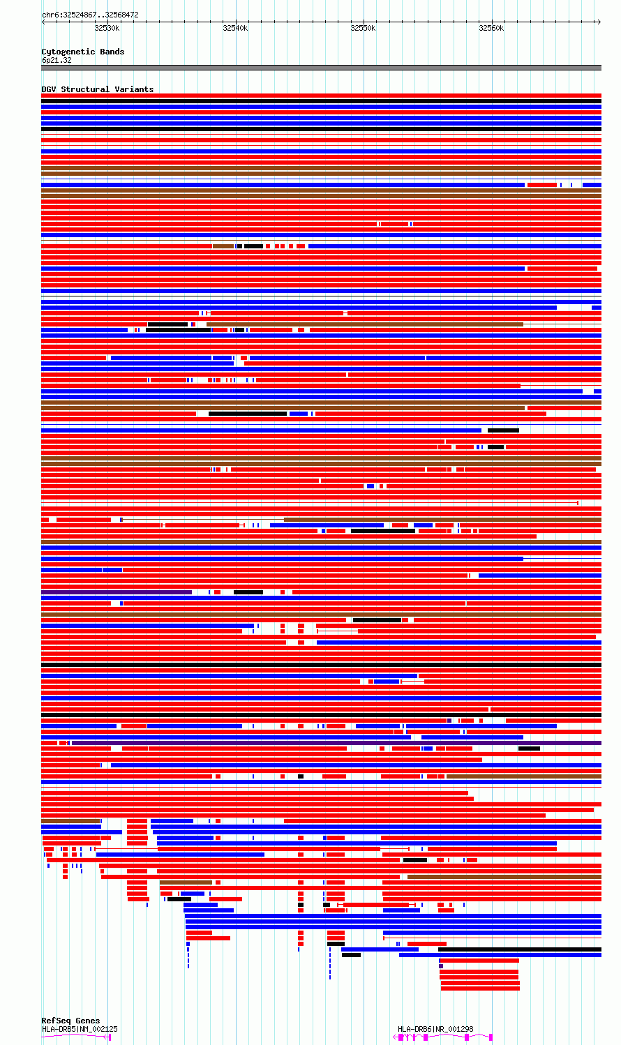 Variant DetailsVariant: essv6928163| Internal ID | 9987741 | | Landmark | | | Location Information | | | Cytoband | 6p21.32 | | Allele length | | Assembly | Allele length | | hg38 | 43606 | | hg19 | 43606 |