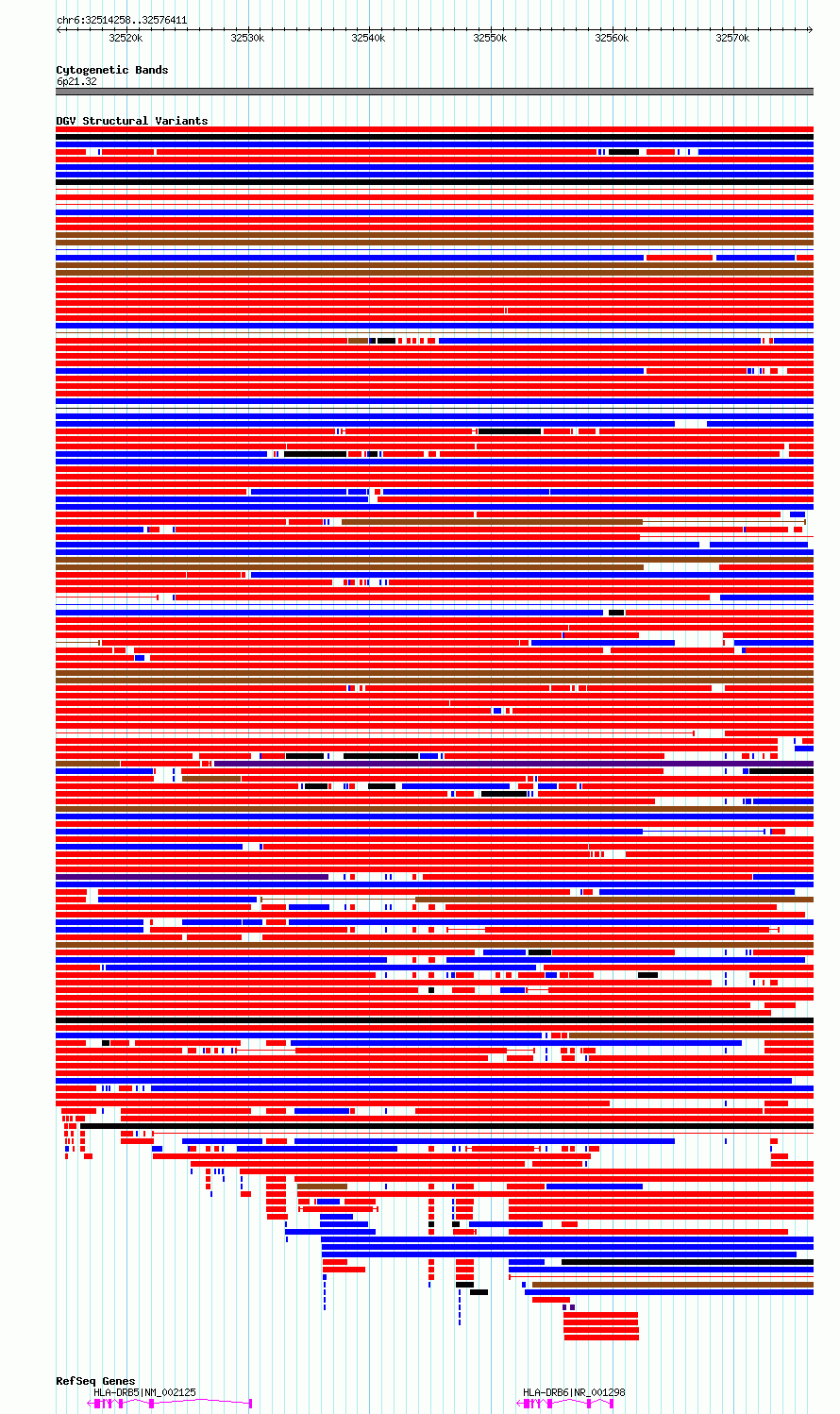 Variant DetailsVariant: essv6930416| Internal ID | 10040117 | | Landmark | | | Location Information | | | Cytoband | 6p21.32 | | Allele length | | Assembly | Allele length | | hg38 | 62154 | | hg19 | 62154 |