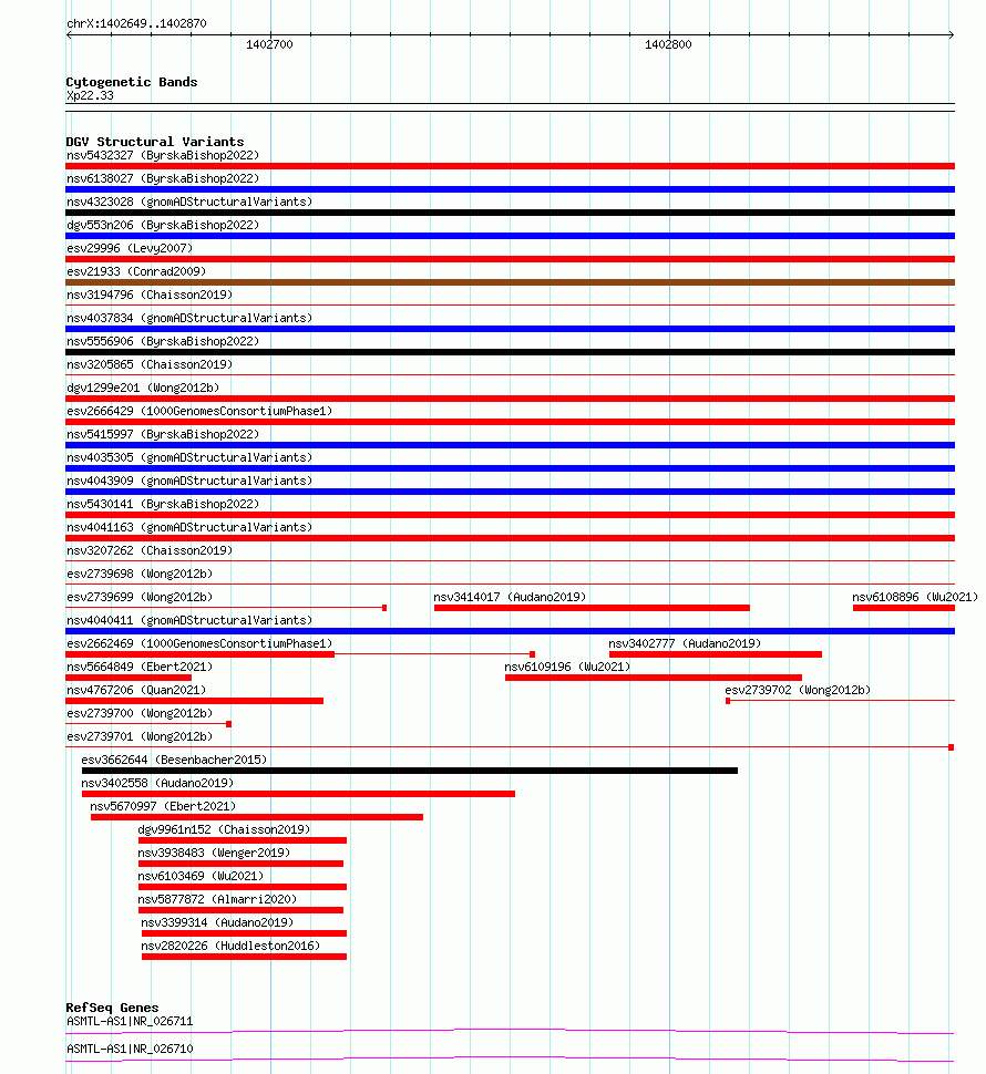 Variant DetailsVariant: essv6930955| Internal ID | 10040374 | | Landmark | | | Location Information | | | Cytoband | Xp22.33 | | Allele length | | Assembly | Allele length | | hg38 | 222 | | hg19 | 222 |