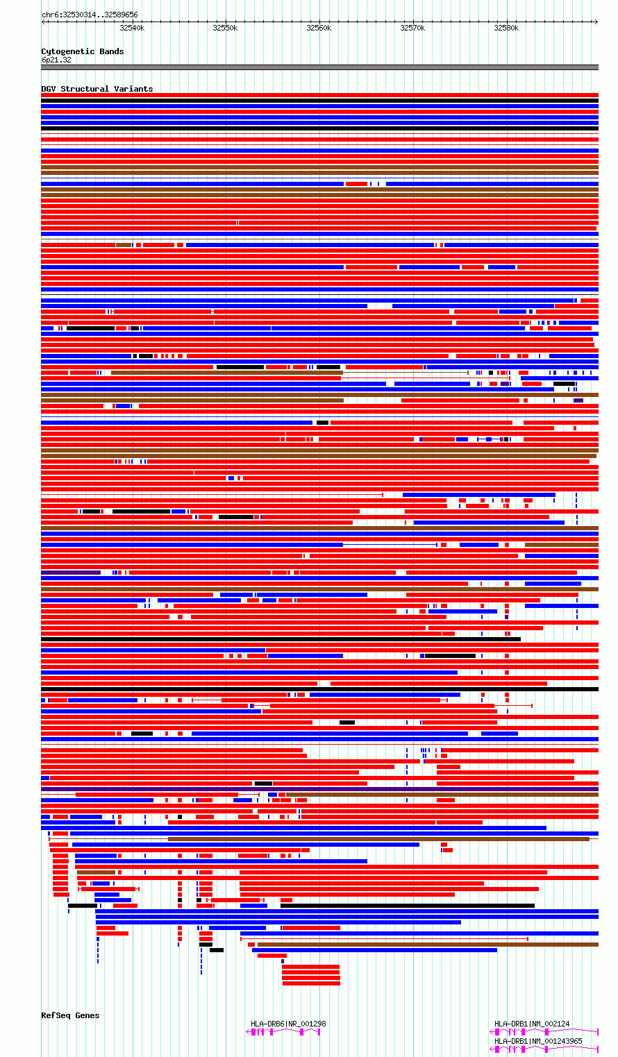 Variant DetailsVariant: essv6934667| Internal ID | 10043532 | | Landmark | | | Location Information | | | Cytoband | 6p21.32 | | Allele length | | Assembly | Allele length | | hg38 | 59343 | | hg19 | 59343 |