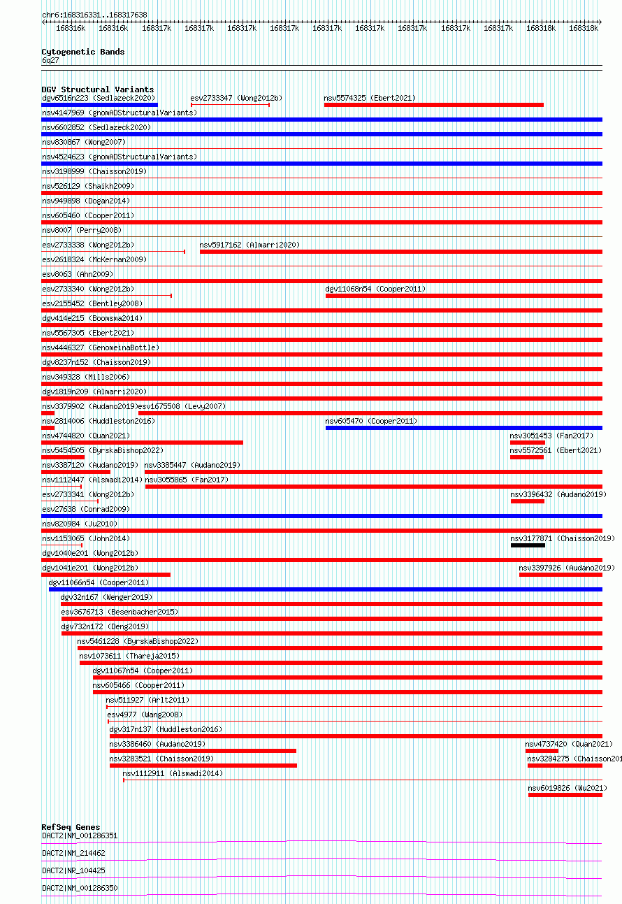 Variant DetailsVariant: essv6934891| Internal ID | 10043734 | | Landmark | | | Location Information | | | Cytoband | 6q27 | | Allele length | | Assembly | Allele length | | hg38 | 1308 | | hg19 | 1308 |