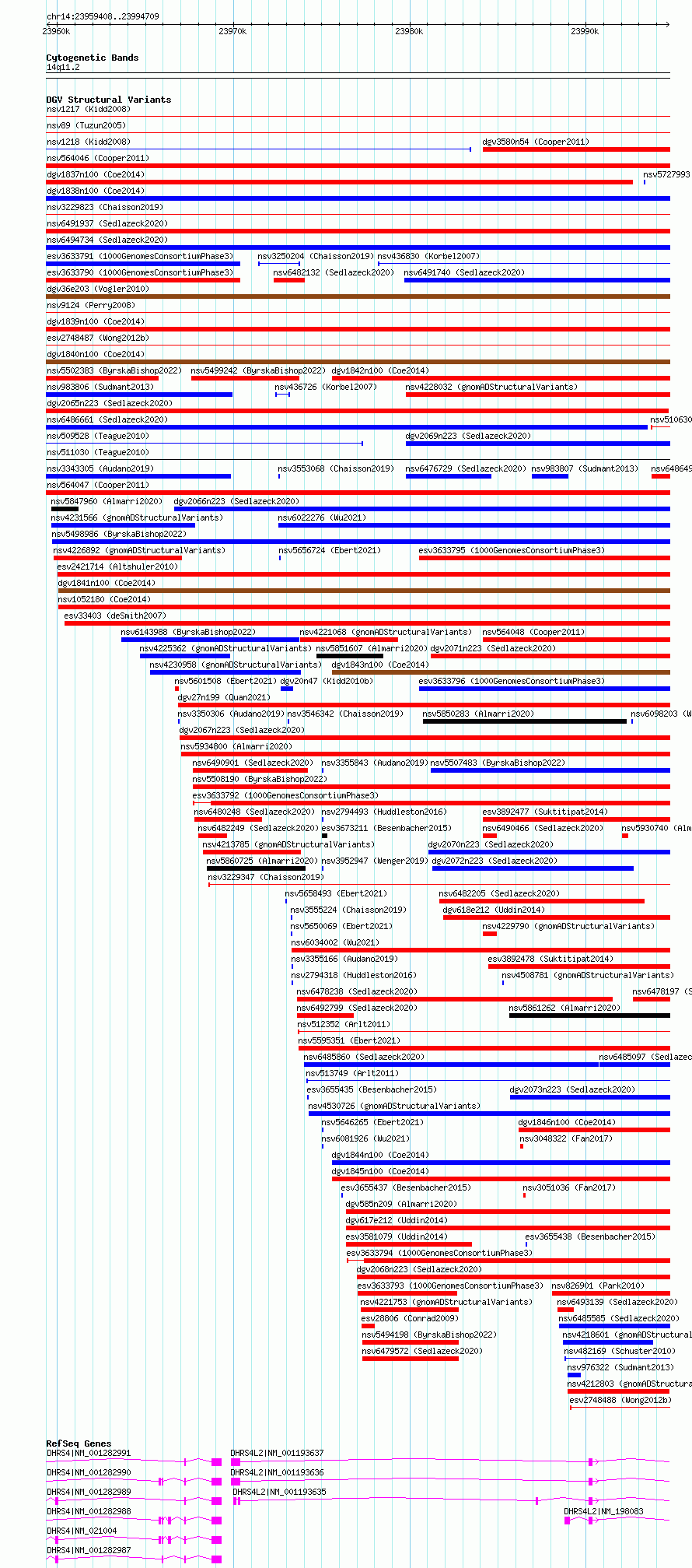 Variant DetailsVariant: essv6936424| Internal ID | 10045525 | | Landmark | | | Location Information | | | Cytoband | 14q11.2 | | Allele length | | Assembly | Allele length | | hg38 | 35302 | | hg19 | 35302 |