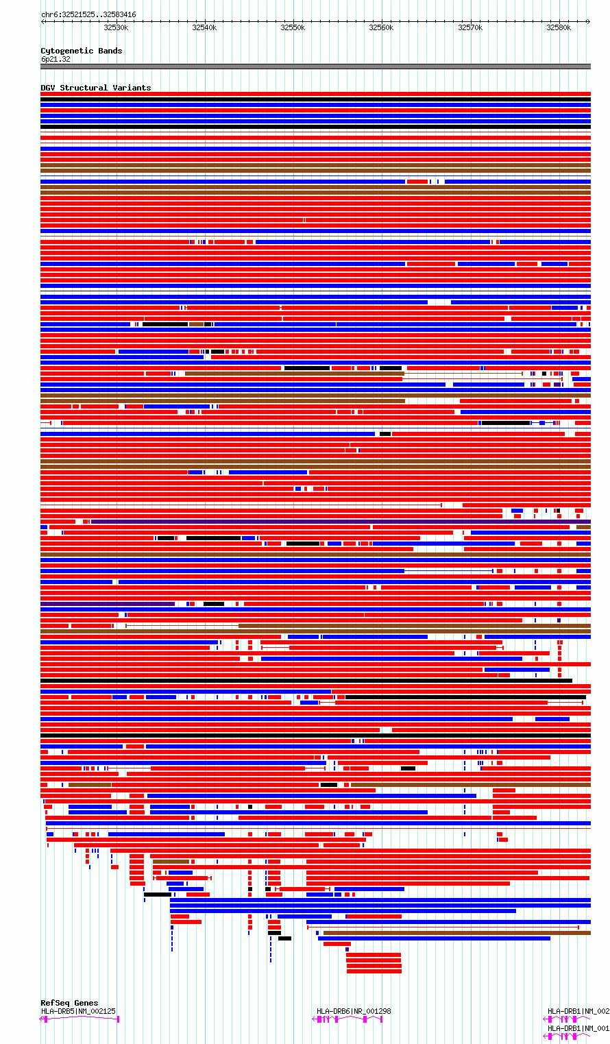 Variant DetailsVariant: essv6938998| Internal ID | 10046053 | | Landmark | | | Location Information | | | Cytoband | 6p21.32 | | Allele length | | Assembly | Allele length | | hg38 | 61892 | | hg19 | 61892 |