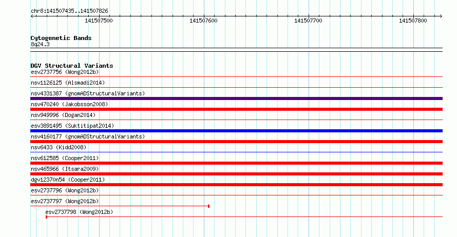 Variant DetailsVariant: essv6939769| Internal ID | 9700499 | | Landmark | | | Location Information | | | Cytoband | 8q24.3 | | Allele length | | Assembly | Allele length | | hg38 | 392 | | hg19 | 392 |