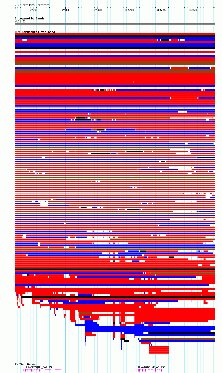 Variant DetailsVariant: essv6943407| Internal ID | 10051965 | | Landmark | | | Location Information | | | Cytoband | 6p21.32 | | Allele length | | Assembly | Allele length | | hg38 | 62081 | | hg19 | 62081 |