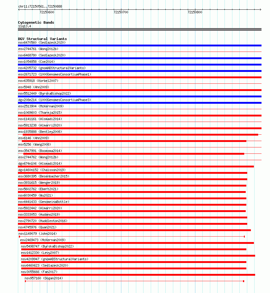 Variant DetailsVariant: essv6944820| Internal ID | 10053434 | | Landmark | | | Location Information | | | Cytoband | 11q13.4 | | Allele length | | Assembly | Allele length | | hg38 | 328 | | hg19 | 328 |