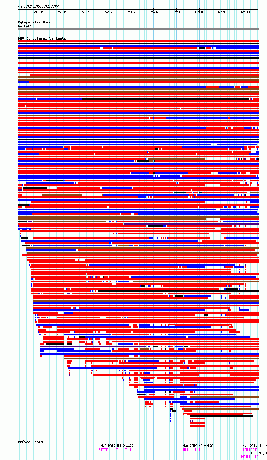 Variant DetailsVariant: essv6947767| Internal ID | 10056316 | | Landmark | | | Location Information | | | Cytoband | 6p21.32 | | Allele length | | Assembly | Allele length | | hg38 | 103942 | | hg19 | 103942 |