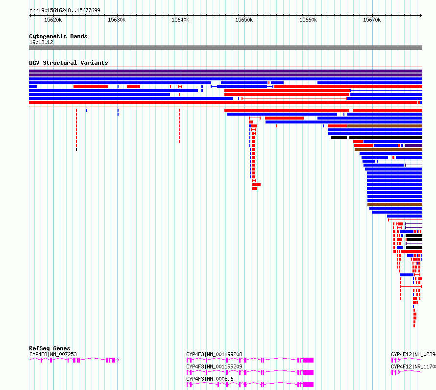 | | Variant Type | CNV deletion | | Copy Number | | | Allele State | | | Allele Origin | | | Probe Count | | | Validation Flag | | | Merged Status | S | | Merged Variants | esv2718235 | | Supporting Variants | | | Samples | SSM024 | | Known Genes | CYP4F12, CYP4F3, CYP4F8 | | Method | Sequencing | | Analysis | Breakdancer:4 times standard deviation,VariationHunter:4 times standard deviation and at least 3 supportting reads | | Platform | Illumina HiSeq 2000 | | Comments | | | Reference | Wong_et_al_2012b | | Pubmed ID | 23290073 | | Accession Number(s) | essv6950161