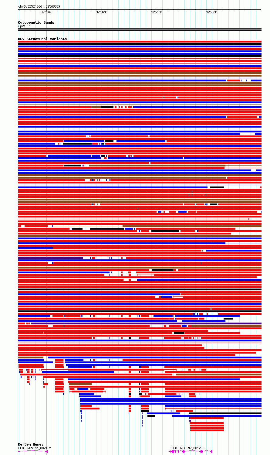 Variant DetailsVariant: essv6951845| Internal ID | 10059112 | | Landmark | | | Location Information | | | Cytoband | 6p21.32 | | Allele length | | Assembly | Allele length | | hg38 | 44024 | | hg19 | 44024 |