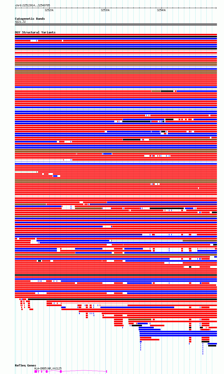 Variant DetailsVariant: essv6951866| Internal ID | 10059087 | | Landmark | | | Location Information | | | Cytoband | 6p21.32 | | Allele length | | Assembly | Allele length | | hg38 | 35872 | | hg19 | 35872 |