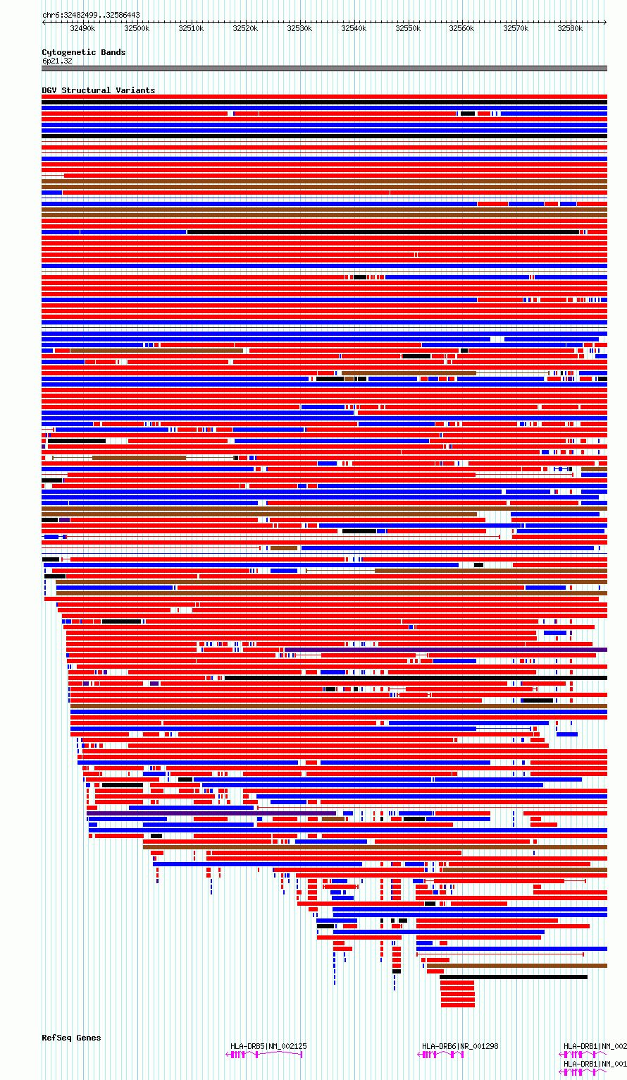 Variant DetailsVariant: essv6951928| Internal ID | 9982495 | | Landmark | | | Location Information | | | Cytoband | 6p21.32 | | Allele length | | Assembly | Allele length | | hg38 | 103945 | | hg19 | 103945 |