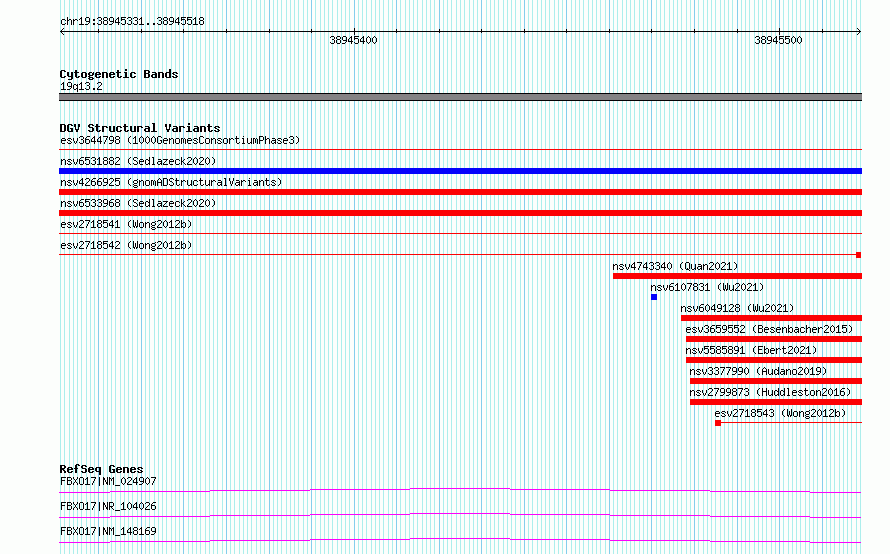 Variant DetailsVariant: essv6954376| Internal ID | 10058736 | | Landmark | | | Location Information | | | Cytoband | 19q13.2 | | Allele length | | Assembly | Allele length | | hg38 | 188 | | hg19 | 188 |
