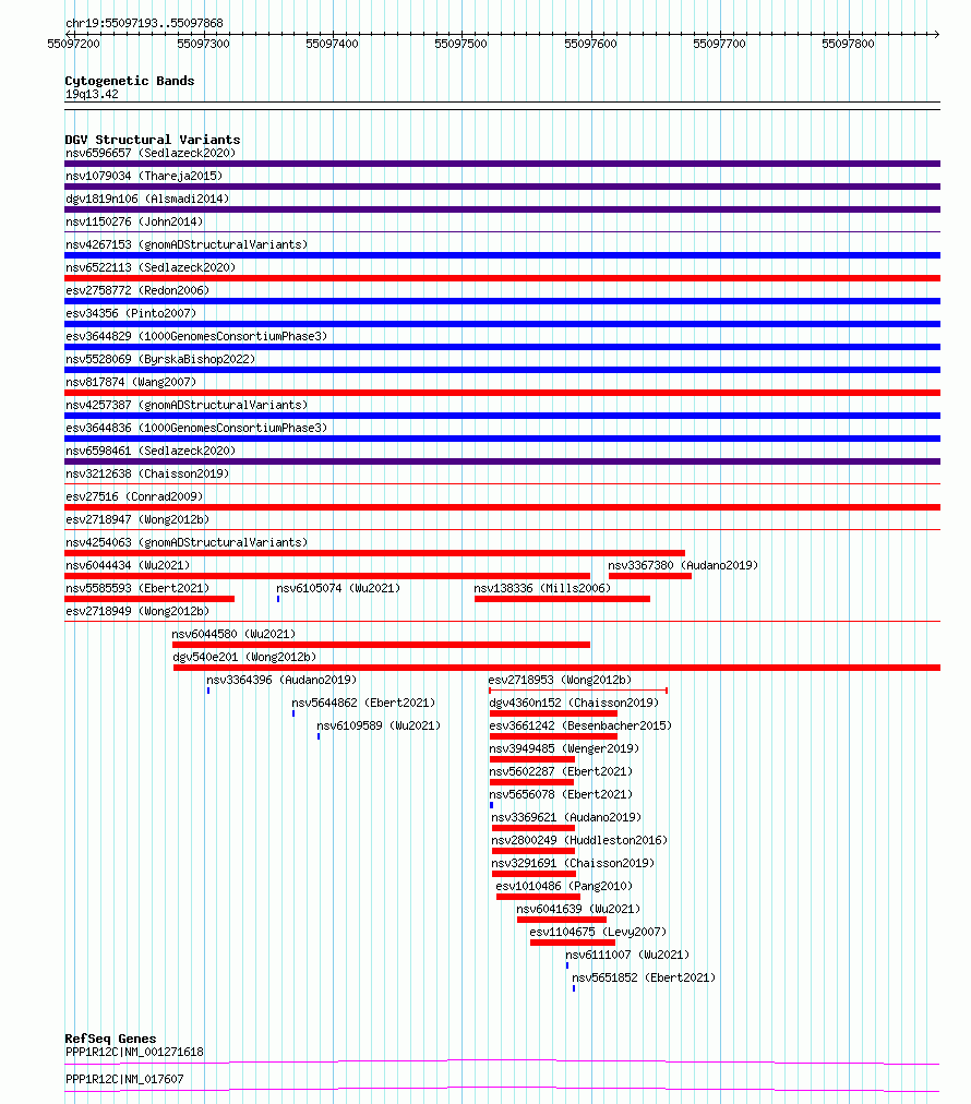 Variant DetailsVariant: essv6954434| Internal ID | 10058789 | | Landmark | | | Location Information | | | Cytoband | 19q13.42 | | Allele length | | Assembly | Allele length | | hg38 | 676 | | hg19 | 676 |