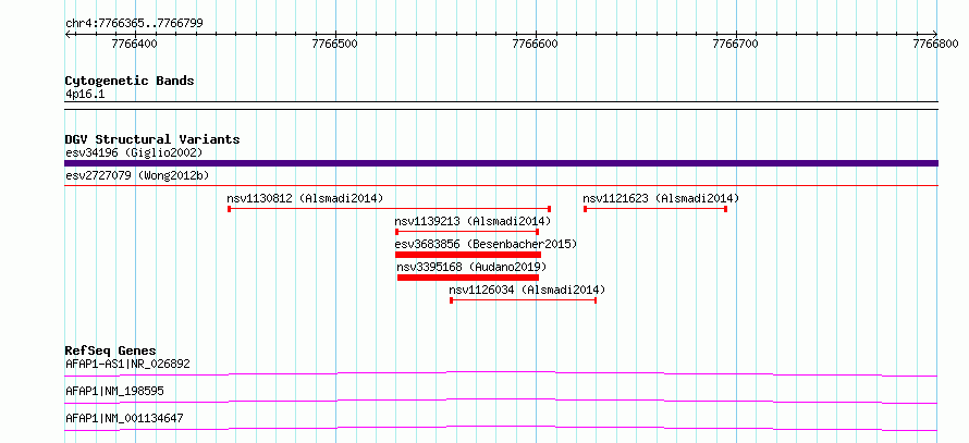Variant DetailsVariant: essv6956096| Internal ID | 9643499 | | Landmark | | | Location Information | | | Cytoband | 4p16.1 | | Allele length | | Assembly | Allele length | | hg38 | 435 | | hg19 | 435 |