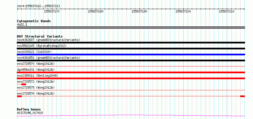 Variant DetailsVariant: essv6956336| Internal ID | 10065074 | | Landmark | | | Location Information | | | Cytoband | 4q32.1 | | Allele length | | Assembly | Allele length | | hg38 | 52 | | hg19 | 52 |