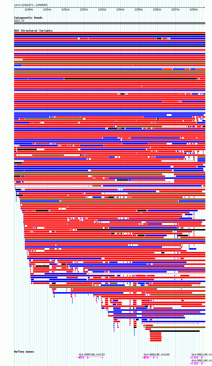 Variant DetailsVariant: essv6956954| Internal ID | 10065629 | | Landmark | | | Location Information | | | Cytoband | 6p21.32 | | Allele length | | Assembly | Allele length | | hg38 | 103982 | | hg19 | 103982 |