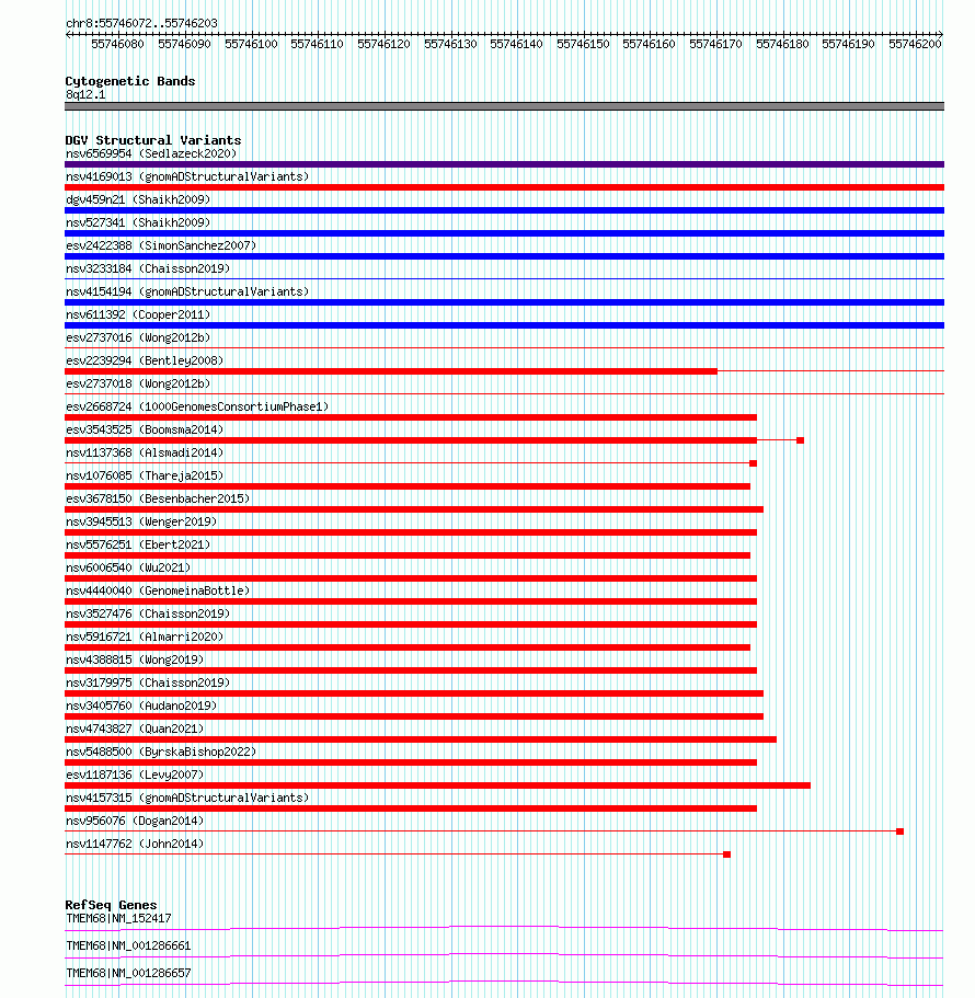 Variant DetailsVariant: essv6958137| Internal ID | 10066695 | | Landmark | | | Location Information | | | Cytoband | 8q12.1 | | Allele length | | Assembly | Allele length | | hg38 | 132 | | hg19 | 132 |