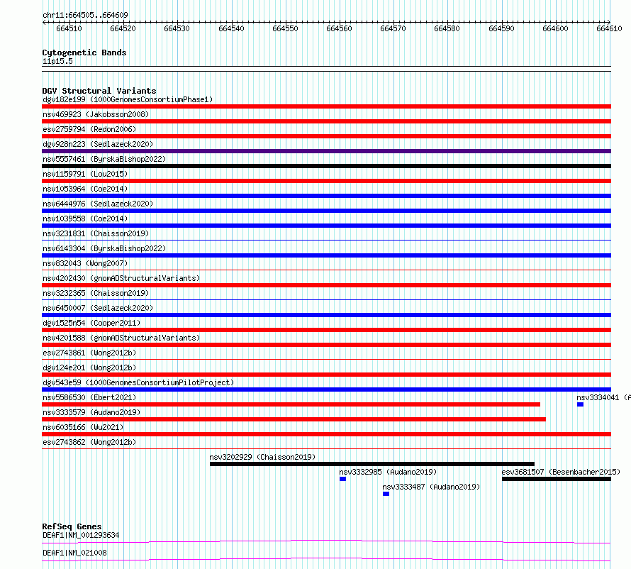 Variant DetailsVariant: essv6958947| Internal ID | 10061394 | | Landmark | | | Location Information | | | Cytoband | 11p15.5 | | Allele length | | Assembly | Allele length | | hg38 | 105 | | hg19 | 105 |