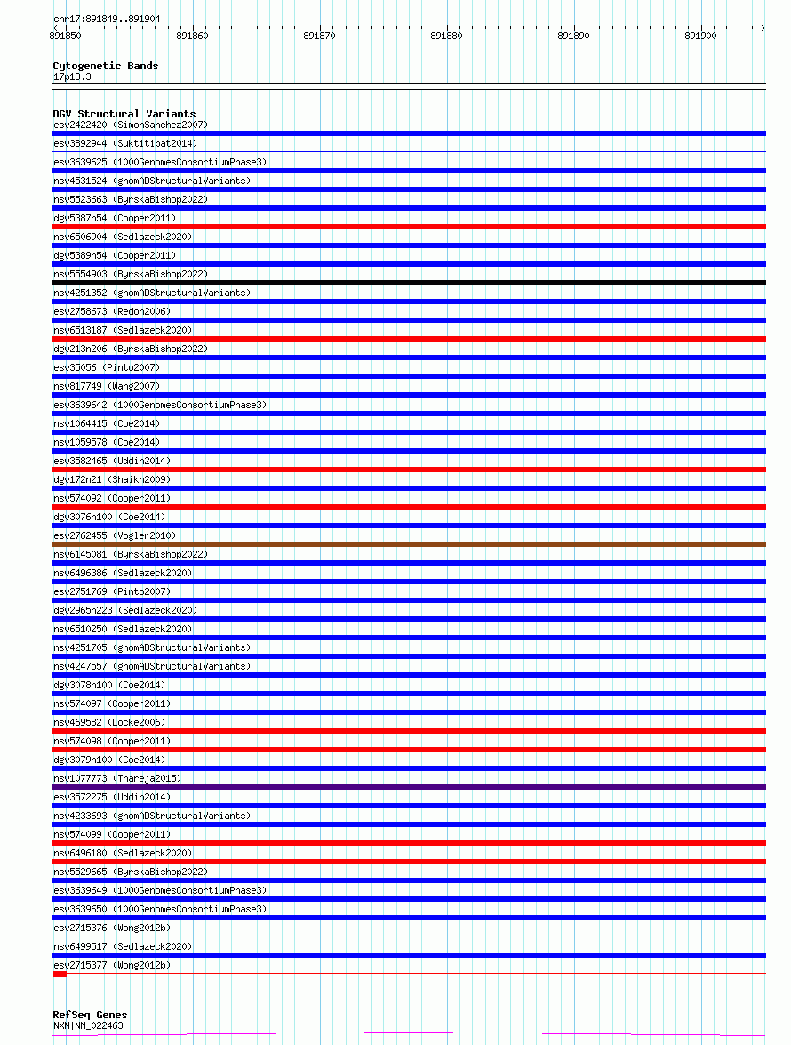 Variant DetailsVariant: essv6960347| Internal ID | 10062654 | | Landmark | | | Location Information | | | Cytoband | 17p13.3 | | Allele length | | Assembly | Allele length | | hg38 | 56 | | hg19 | 56 |