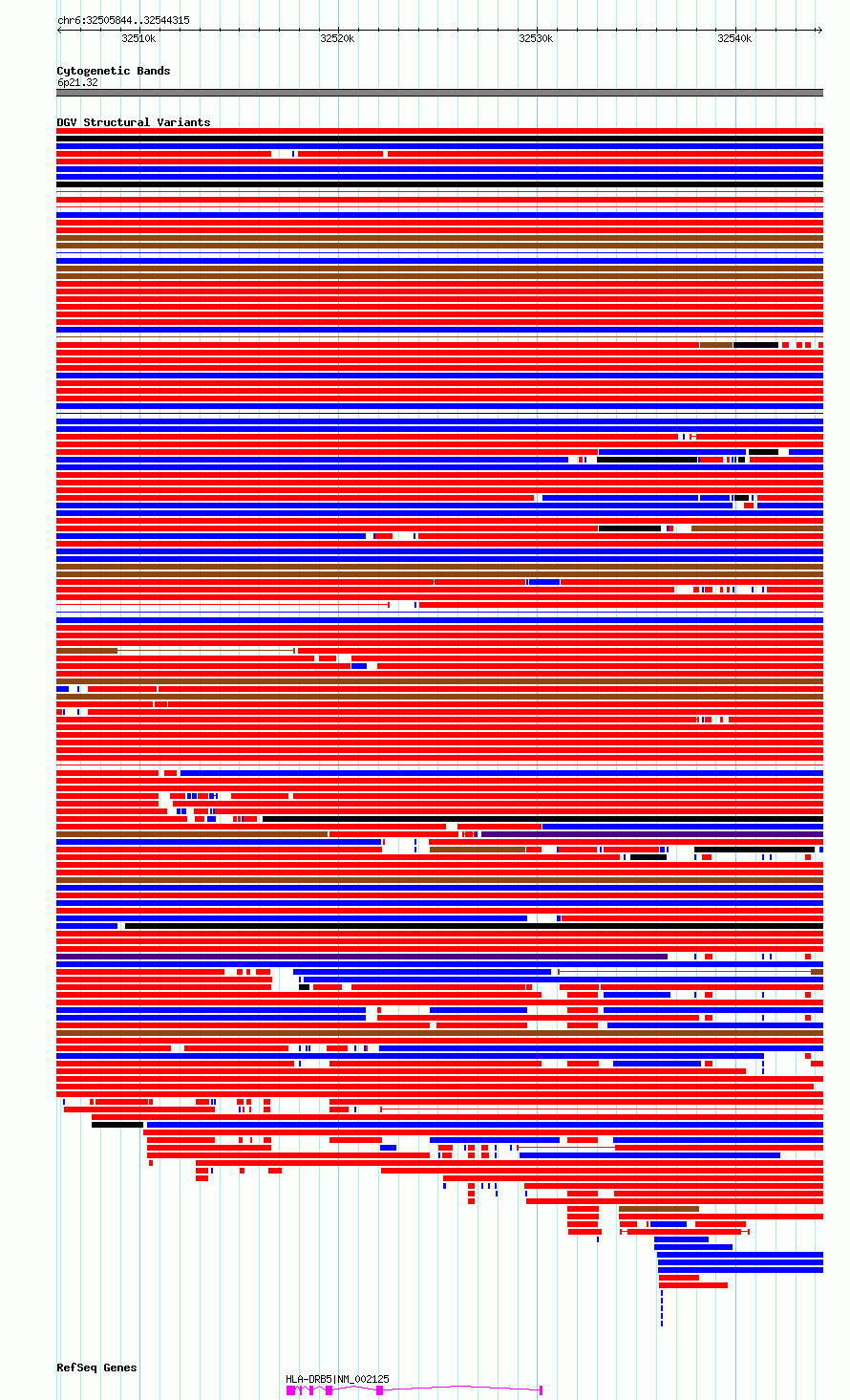 Variant DetailsVariant: essv6960462| Internal ID | 9990315 | | Landmark | | | Location Information | | | Cytoband | 6p21.32 | | Allele length | | Assembly | Allele length | | hg38 | 38472 | | hg19 | 38472 |