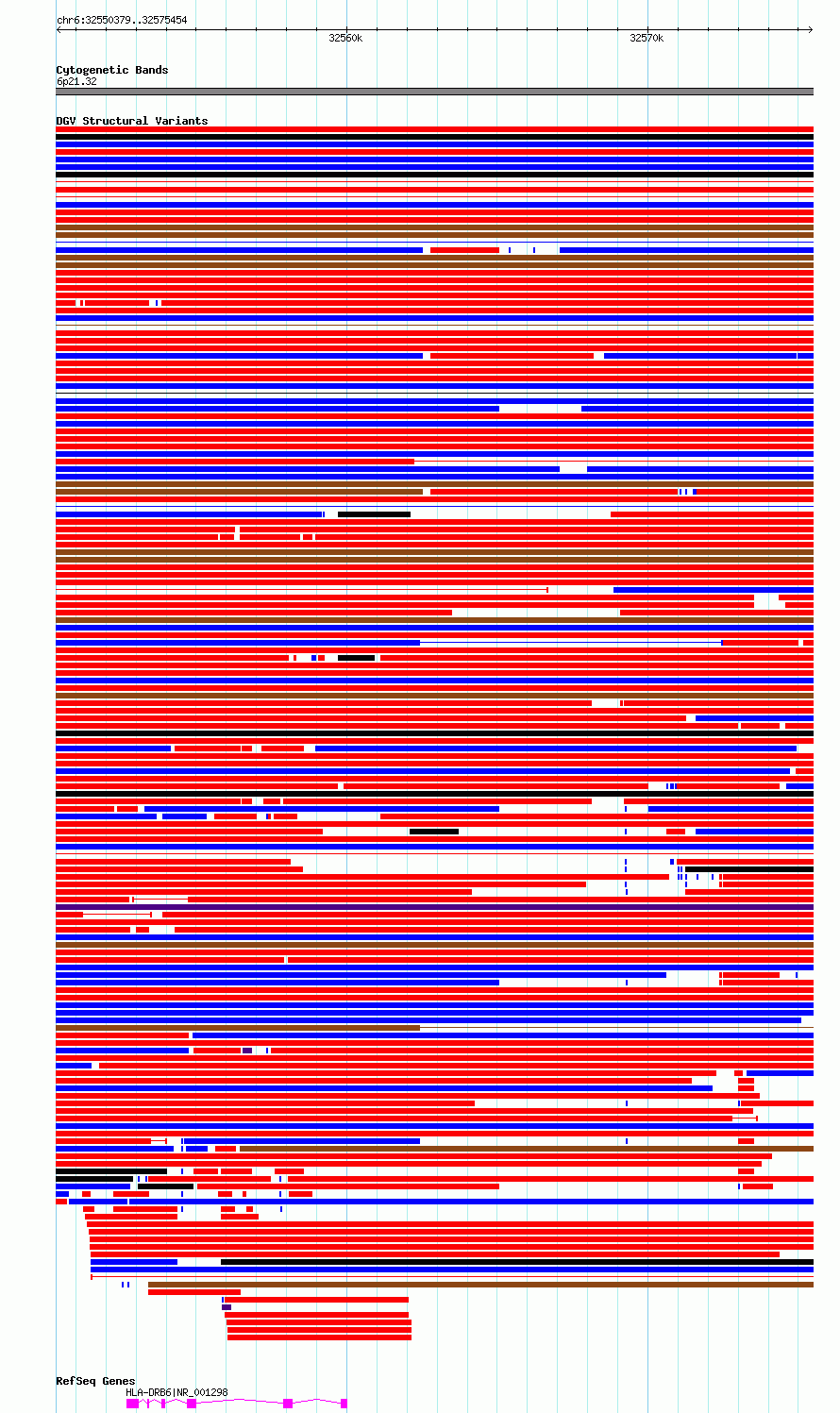 Variant DetailsVariant: essv6960862| Internal ID | 9990200 | | Landmark | | | Location Information | | | Cytoband | 6p21.32 | | Allele length | | Assembly | Allele length | | hg38 | 25076 | | hg19 | 25076 |