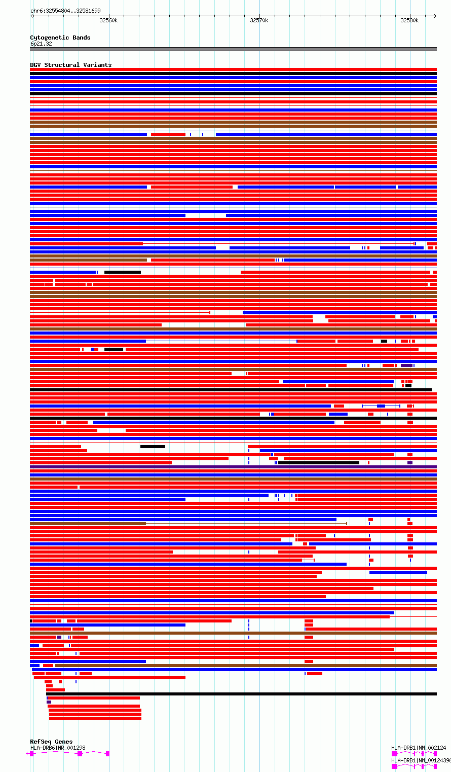 | | Variant Type | CNV deletion | | Copy Number | | | Allele State | | | Allele Origin | | | Probe Count | | | Validation Flag | | | Merged Status | S | | Merged Variants | esv2731844, esv2731846, esv2731848, esv2731839, esv2731842, esv2731847, esv2731835, esv2731837 | | Supporting Variants | | | Samples | SSM004 | | Known Genes | HLA-DRB1, HLA-DRB6 | | Method | Sequencing | | Analysis | Breakdancer:4 times standard deviation,VariationHunter:4 times standard deviation and at least 3 supportting reads | | Platform | Illumina HiSeq 2000 | | Comments | | | Reference | Wong_et_al_2012b | | Pubmed ID | 23290073 | | Accession Number(s) | essv6960951