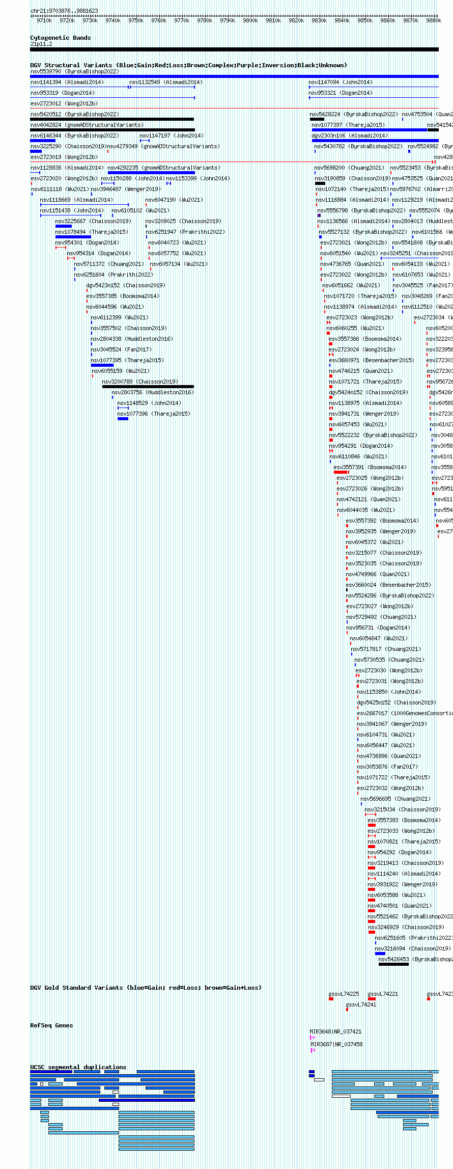 Variant DetailsVariant: essv6961276| Internal ID | 10063489 | | Landmark | | | Location Information | | | Cytoband | 21p11.2 | | Allele length | | Assembly | Allele length | | hg19 | 177748 |