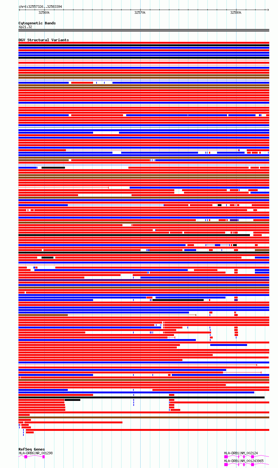 Variant DetailsVariant: essv6963688| Internal ID | 10069404 | | Landmark | | | Location Information | | | Cytoband | 6p21.32 | | Allele length | | Assembly | Allele length | | hg38 | 26069 | | hg19 | 26069 |