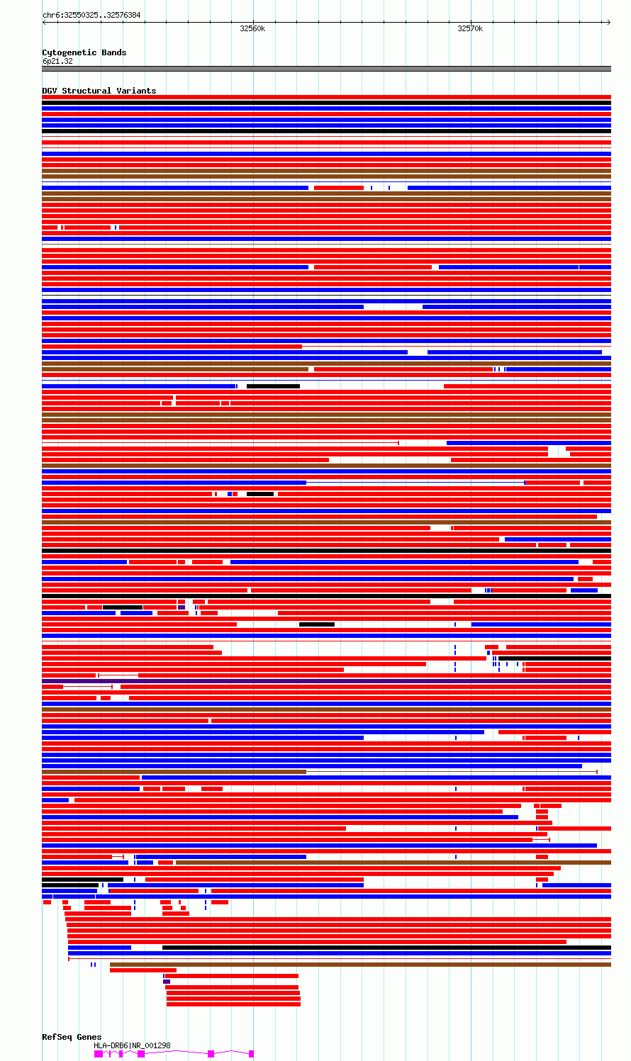 Variant DetailsVariant: essv6963708| Internal ID | 10069421 | | Landmark | | | Location Information | | | Cytoband | 6p21.32 | | Allele length | | Assembly | Allele length | | hg38 | 26060 | | hg19 | 26060 |