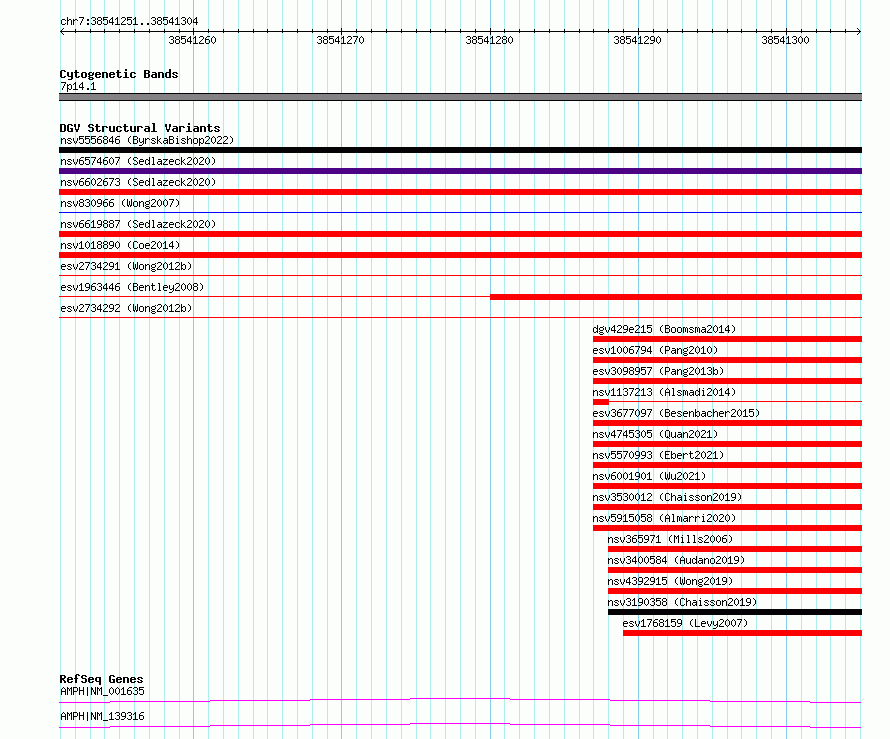 Variant DetailsVariant: essv6964133| Internal ID | 10070678 | | Landmark | | | Location Information | | | Cytoband | 7p14.1 | | Allele length | | Assembly | Allele length | | hg38 | 54 | | hg19 | 54 |