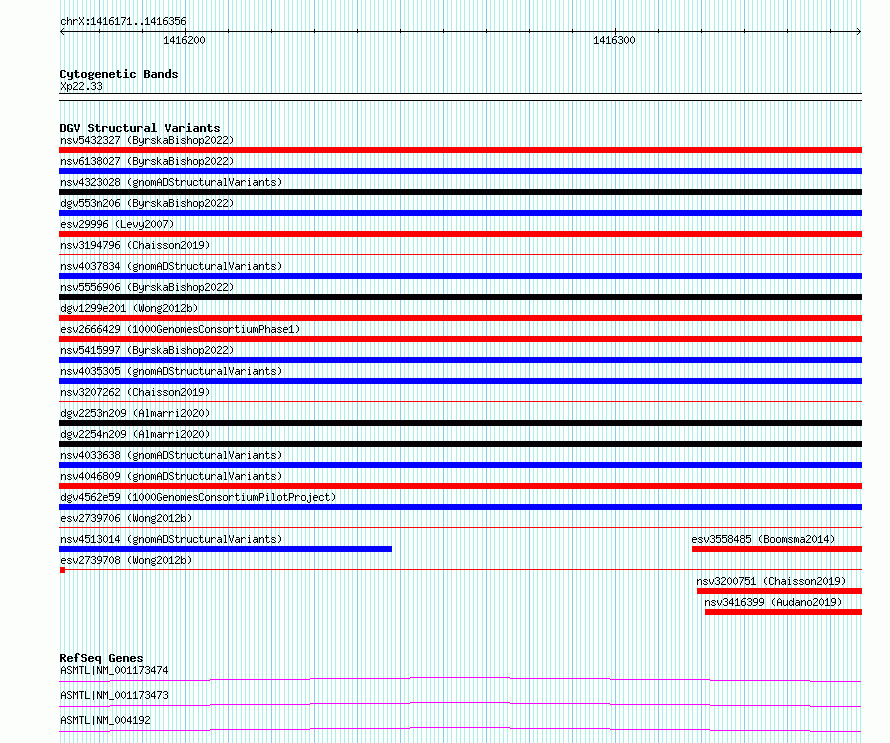 Variant DetailsVariant: essv6964489| Internal ID | 10071074 | | Landmark | | | Location Information | | | Cytoband | Xp22.33 | | Allele length | | Assembly | Allele length | | hg38 | 186 | | hg19 | 186 |