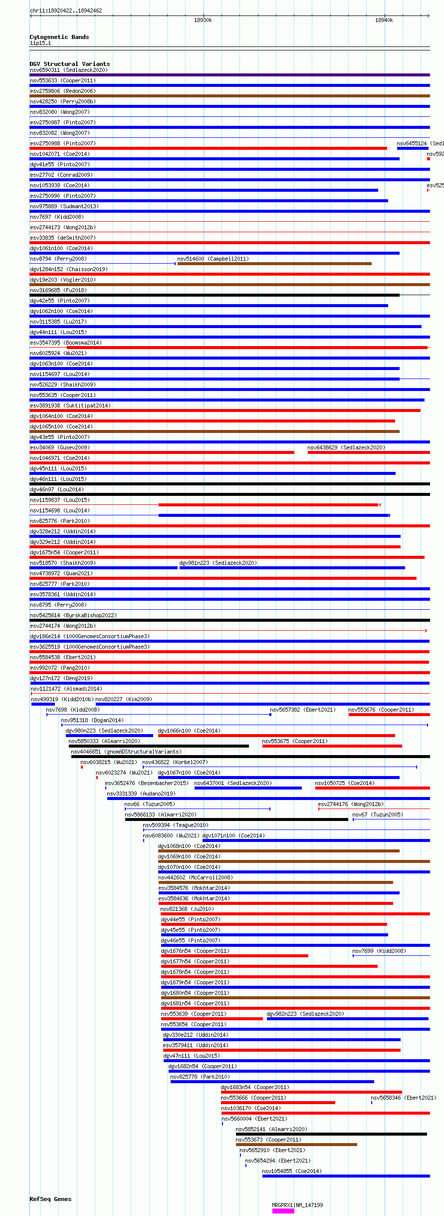 Variant DetailsVariant: essv6965516| Internal ID | 10069731 | | Landmark | | | Location Information | | | Cytoband | 11p15.1 | | Allele length | | Assembly | Allele length | | hg38 | 22041 | | hg19 | 22041 |