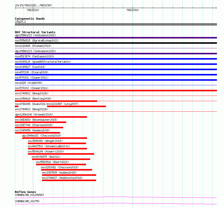 | | Variant Type | CNV deletion | | Copy Number | | | Allele State | | | Allele Origin | | | Probe Count | | | Validation Flag | | | Merged Status | S | | Merged Variants | esv2749912, esv2749913 | | Supporting Variants | | | Samples | SSM027 | | Known Genes | CHRNB4 | | Method | Sequencing | | Analysis | Breakdancer:4 times standard deviation,VariationHunter:4 times standard deviation and at least 3 supportting reads | | Platform | Illumina HiSeq 2000 | | Comments | | | Reference | Wong_et_al_2012b | | Pubmed ID | 23290073 | | Accession Number(s) | essv6966490