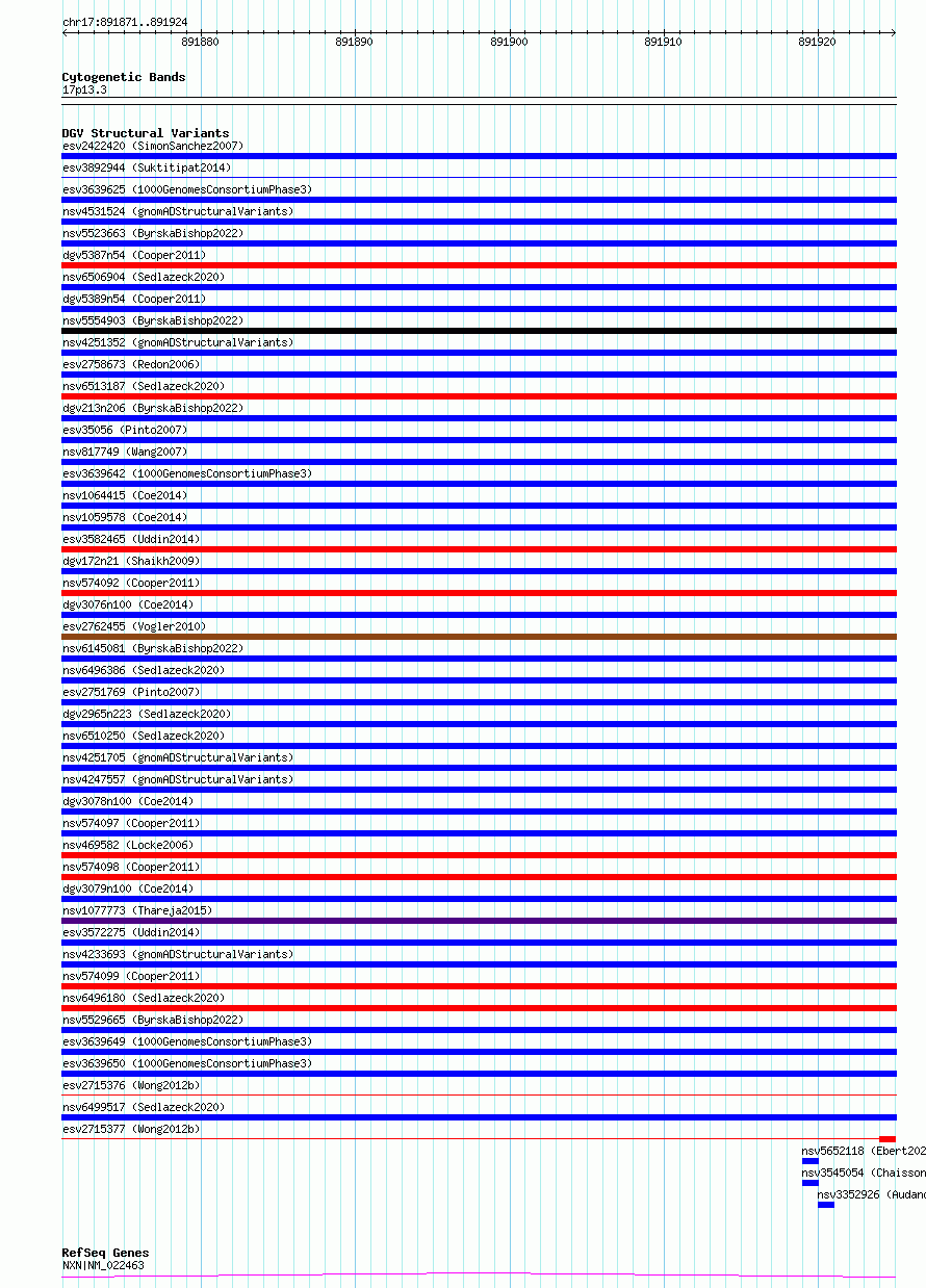 Variant DetailsVariant: essv6966824| Internal ID | 10072749 | | Landmark | | | Location Information | | | Cytoband | 17p13.3 | | Allele length | | Assembly | Allele length | | hg38 | 54 | | hg19 | 54 |