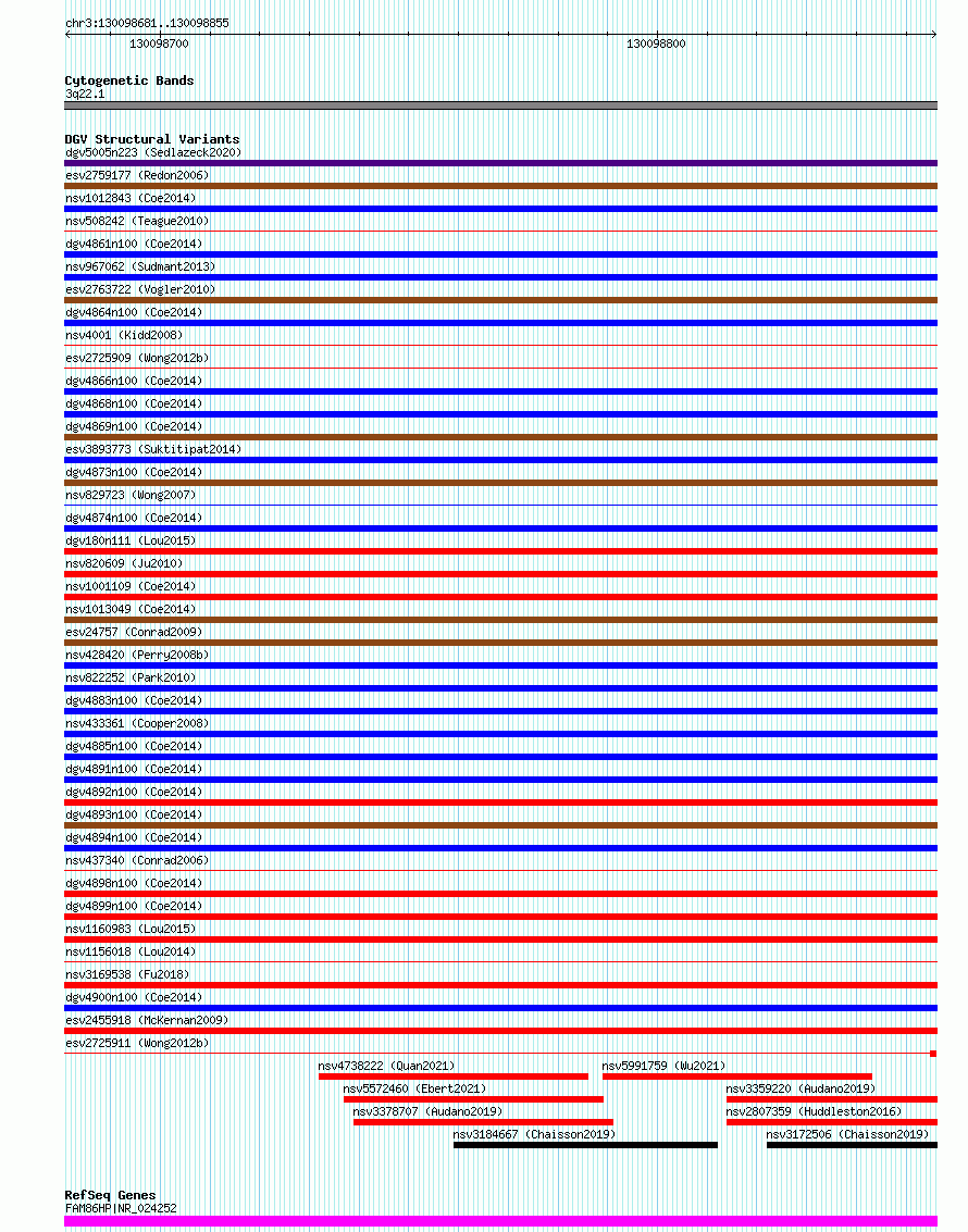 Variant DetailsVariant: essv6968615| Internal ID | 10076413 | | Landmark | | | Location Information | | | Cytoband | 3q22.1 | | Allele length | | Assembly | Allele length | | hg38 | 175 | | hg19 | 175 |