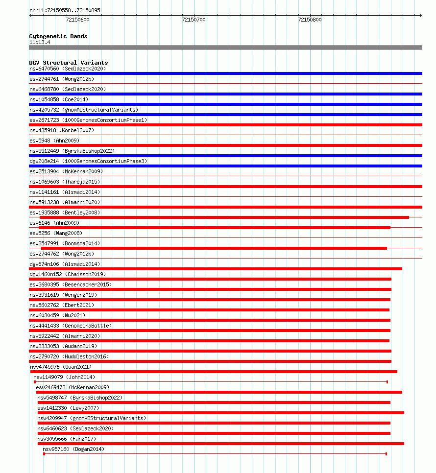 Variant DetailsVariant: essv6970418| Internal ID | 9991609 | | Landmark | | | Location Information | | | Cytoband | 11q13.4 | | Allele length | | Assembly | Allele length | | hg38 | 338 | | hg19 | 338 |