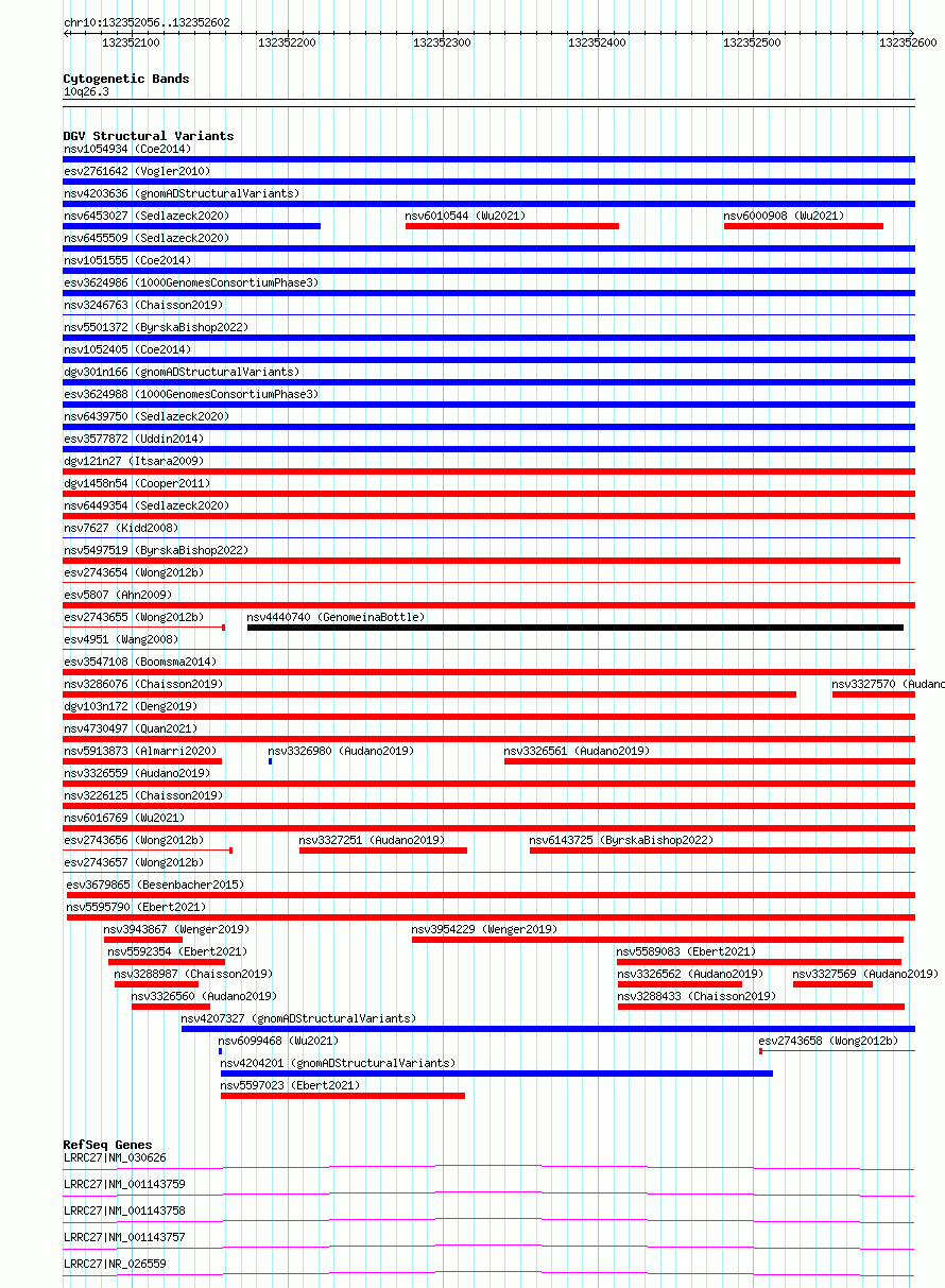 Variant DetailsVariant: essv6970560| Internal ID | 10074663 | | Landmark | | | Location Information | | | Cytoband | 10q26.3 | | Allele length | | Assembly | Allele length | | hg38 | 547 | | hg19 | 547 |
