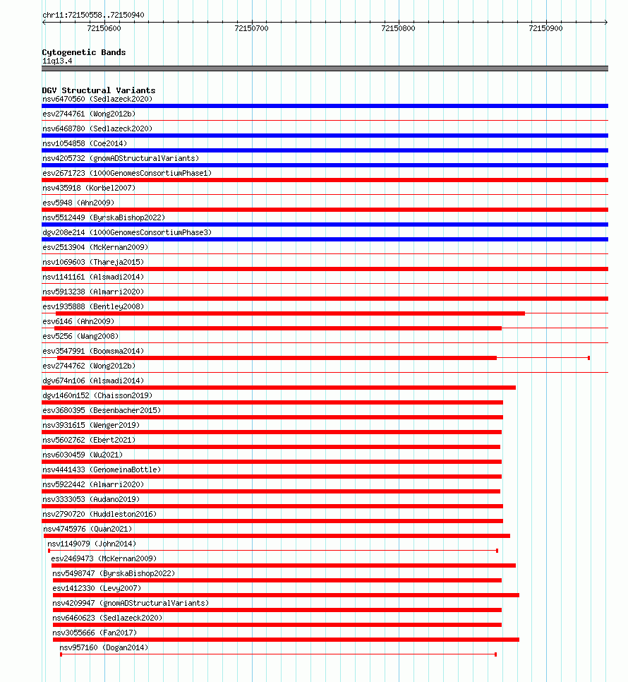 Variant DetailsVariant: essv6970692| Internal ID | 10074544 | | Landmark | | | Location Information | | | Cytoband | 11q13.4 | | Allele length | | Assembly | Allele length | | hg38 | 383 | | hg19 | 383 |