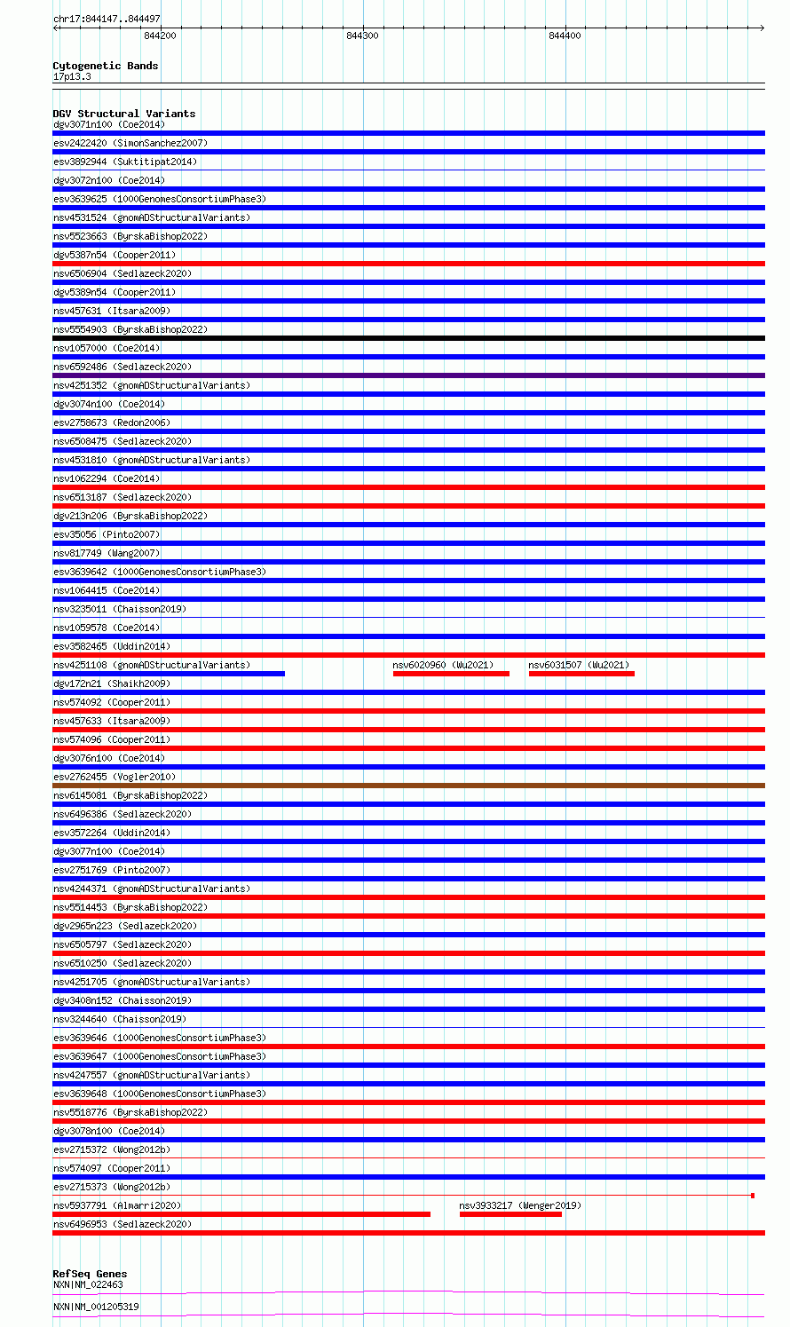 Variant DetailsVariant: essv6971506| Internal ID | 10073812 | | Landmark | | | Location Information | | | Cytoband | 17p13.3 | | Allele length | | Assembly | Allele length | | hg38 | 351 | | hg19 | 351 |
