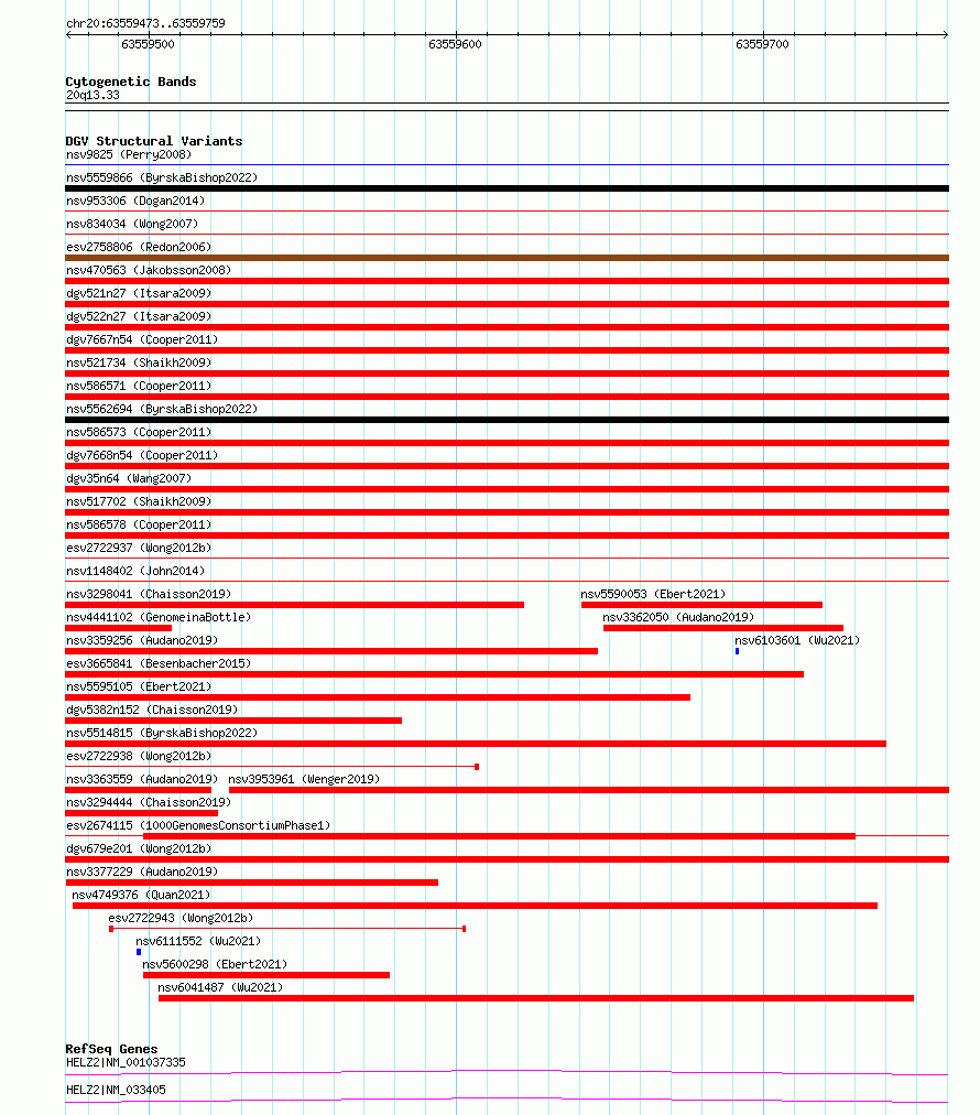 Variant DetailsVariant: essv6971849| Internal ID | 10073503 | | Landmark | | | Location Information | | | Cytoband | 20q13.33 | | Allele length | | Assembly | Allele length | | hg38 | 287 | | hg19 | 287 |