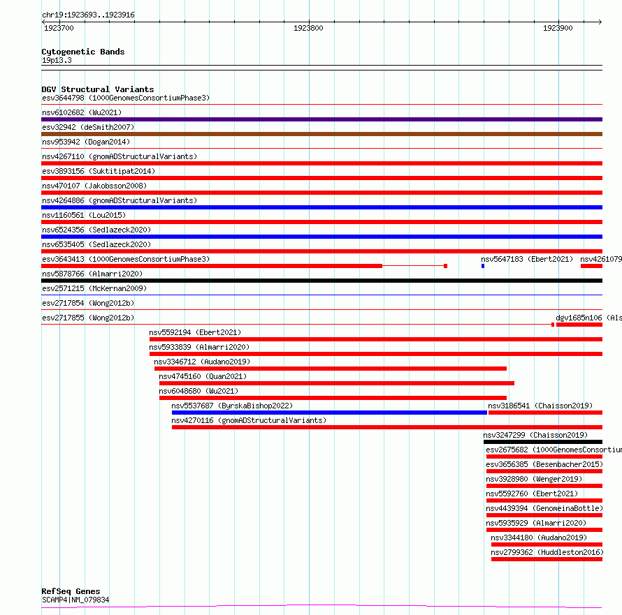 Variant DetailsVariant: essv6971869| Internal ID | 10073485 | | Landmark | | | Location Information | | | Cytoband | 19p13.3 | | Allele length | | Assembly | Allele length | | hg38 | 224 | | hg19 | 224 |