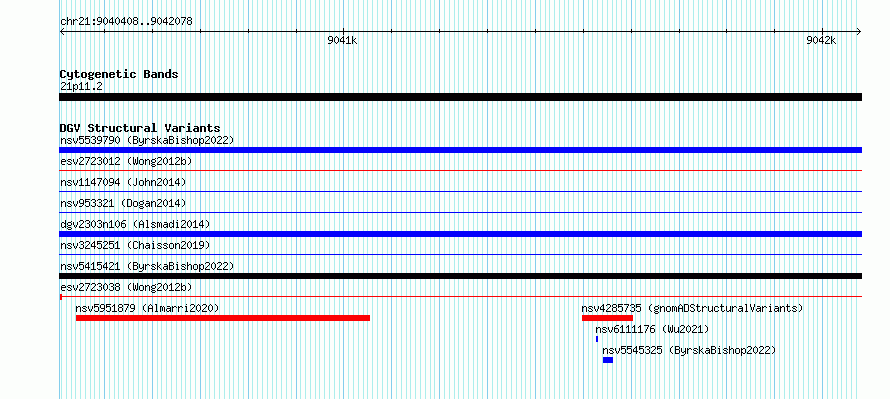Variant DetailsVariant: essv6972131| Internal ID | 10073249 | | Landmark | | | Location Information | | | Cytoband | 21p11.2 | | Allele length | | Assembly | Allele length | | hg38 | 1671 | | hg19 | 1671 |