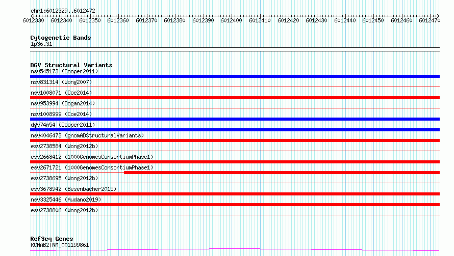 Variant DetailsVariant: essv6972310| Internal ID | 9732391 | | Landmark | | | Location Information | | | Cytoband | 1p36.31 | | Allele length | | Assembly | Allele length | | hg38 | 144 | | hg19 | 144 |