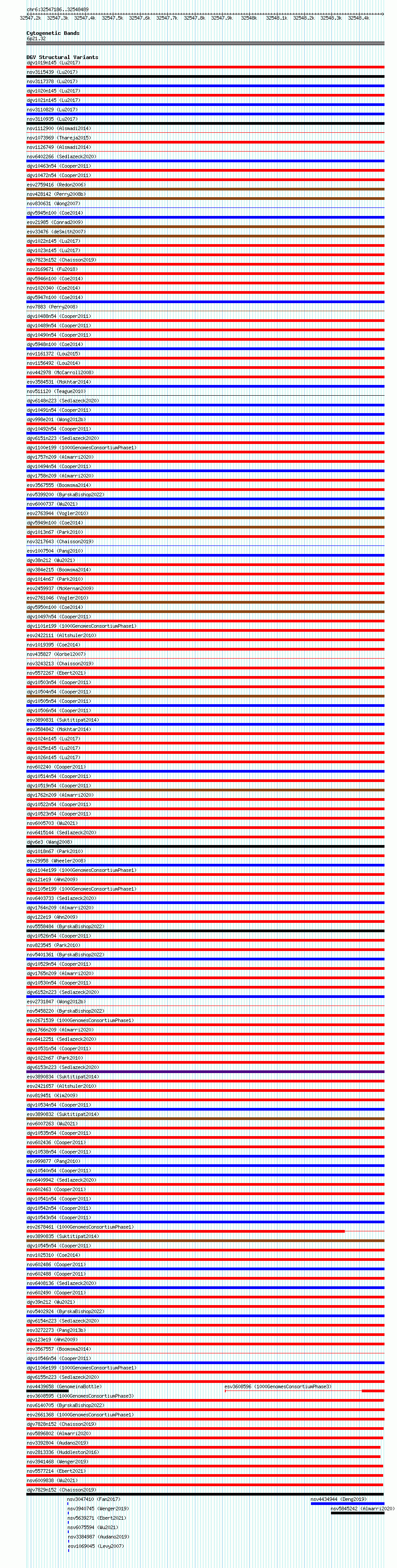 Variant DetailsVariant: essv6974739| Internal ID | 10083205 | | Landmark | | | Location Information | | | Cytoband | 6p21.32 | | Allele length | | Assembly | Allele length | | hg38 | 1304 | | hg19 | 1304 |